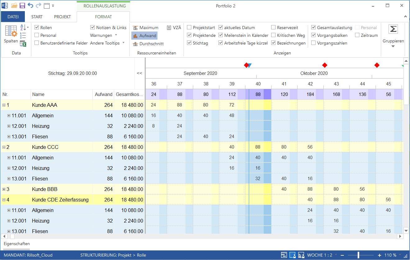 Rollenauslastung im Portfolio in Rillsoft Cloud